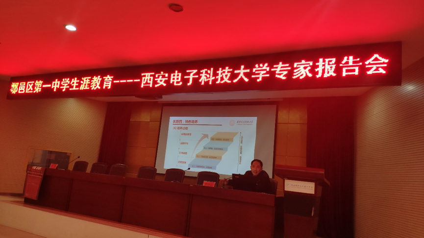 12月21日,我校马克思主义学院赵常兴、韦统义、蒋冬双三位老师赴我校优秀生源基地——清华大学附属中学秦汉学校进行招生宣传,与近两百位高三年级学生开展面对面交流与宣传活动。赵常兴首先代表学校向秦汉中学送达了喜报,对近些年秦汉中学向我校输送大量优秀学生表示感谢。在招生宣讲中,赵常兴向学生仔细介绍了西安电子科技大学的历史沿革、办学理念、育人成就、优势学科专业等,并结合当前中华民族伟大复兴进程中遇到的重大挑战,鼓励学生要有爱国之情、为中华民族伟大复兴贡献自己的青春和力量。