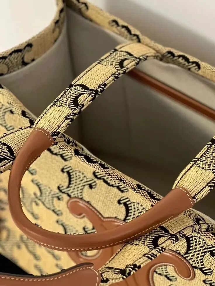 天然拉菲草编织而成的这款托特包,刚好兼具美观和实用性,大量印花拼贴小牛皮凯旋徽标,让包包看起来复古意味甚浓,皮质手柄好提的基础上,也不再容易把布料“盘包浆”,这样包包使用期限也就更久啦~而且,在托特包本身的大容量上,又加了一个侧边兜,放一些重要物品或是手机都很方便,再也不用整个包扒拉着找手机啦,简直绝绝子!