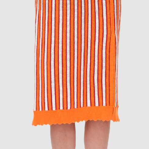 亮橙色的竖条纹针织半裙,很好的展现出人群中“小焦点”的激情四溢,吸引别人目光有时候就是来的这么快。