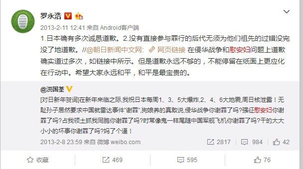 关于慰安妇,日本政府无需道歉,以及支那人。