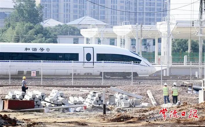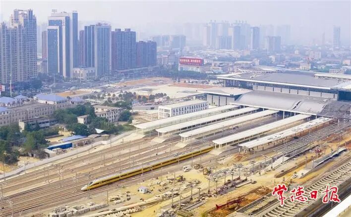 11月2日,和谐号检测车缓缓开向正在建设中的高铁常德站。