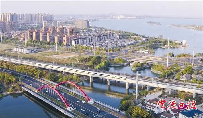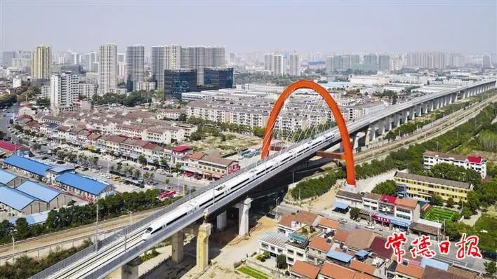 10月13日,和谐号检测车穿梭在常德城区,沿线美景尽收眼底。