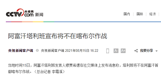 另据央视新闻报道,当地时间15日,阿富汗塔利班发言人穆贾希德在社交媒体上发布消息称,塔利班将不在阿富汗首都喀布尔作战。消息传到英国,保守党议员托比亚斯·埃尔伍德对泰晤士时代电台说,“这对西方来说完全是羞辱。我们组建了世界上最令人难以置信的,技术最先进的联盟,结果正在被一个那些AK47和火箭弹的武装打败。这将是本世纪迄今为止,西方制造的最大乌龙。”