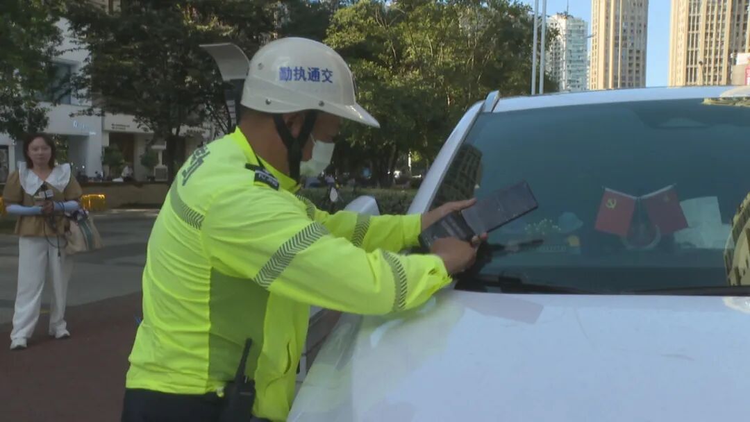 8月11日下午,记者跟随龙港市公安局交警大队工作人员来到财富广场周边,严查路口附近车辆乱停乱放违法行为。