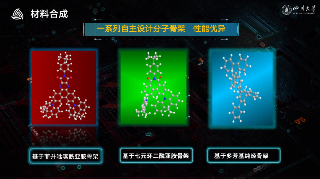 《追光者-新一代节能发光材料》项目团队从原理、路线和分子三大方面进行了技术革新——创新性采用TADF发光机理,发光效率显著提升;自主设计分子骨架,实现纯有机结构;使用基于实验室自主研发的碳氢键合成方法论,缩短了繁杂冗长的合成步骤,设计出新一代OLED节能发光材料,实现技术国产化。