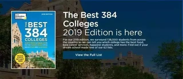 《普林斯顿评论》对美国384所大学内超过13万名学生进行问卷调查;根据学生关心的美国大学综合排名、学校概况、录取要求以及社交生活等多个角度,将全美大学的信息加以有效整理,并汇总成册。