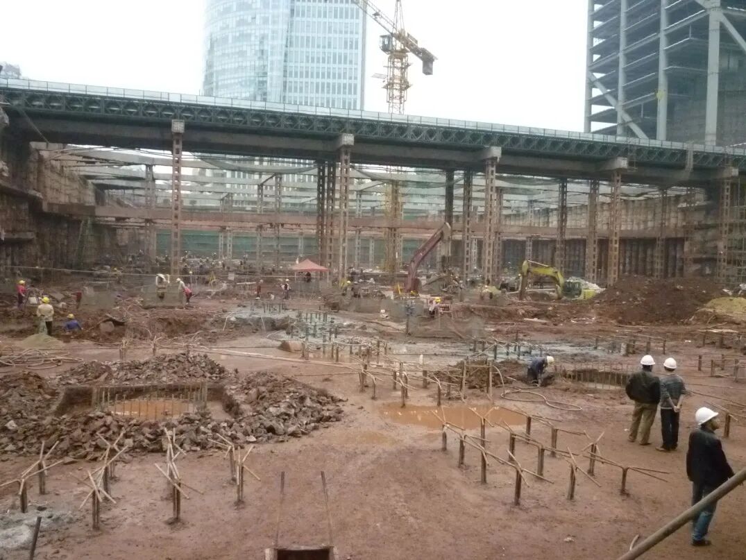 其实,基坑设计的工作感觉最难还是基坑群设计,通过实际工程经历主要有几点体会:1)基坑群设计重难点大致可分为理论技术、工况管控两个层面,理论技术方面主要是针对“群坑效应”,工况管控方面分为时间控制、空间控制及协调管理。2)支护体系传力路径应清晰,支撑总体布局与局部落深布局协调统一,分隔墙尽可能将两侧支撑设置为同一标高;相邻基坑拆换撑过程宜均衡对称,且明确拆除或凿除时机、先后顺序;临时隔断宜分区分段凿除并及时将两侧板撑对接回顶。3)地块独立实施模式,施工相对独立,相互制约小,施工便利,施工进度快,但所需临时结构多,造价较高;地块合并实施模式,支护结构材料费用减少,但整体工期和地块开发进度较慢。