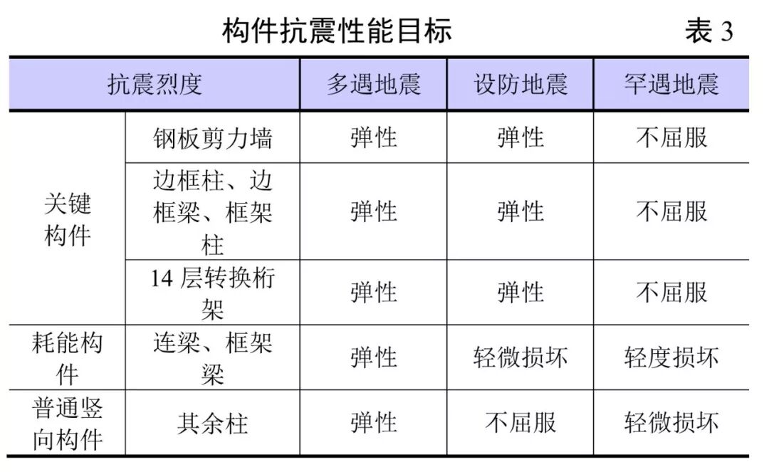 本工程基本设计参数见表1,结构抗震等级见表2,构件的抗震性能目标见表3。