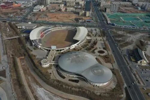 白银体育中心项目,由体育场、综合馆及网球馆组成。体育场平面采用八心椭圆,南北长约225米,东西长约210m,东西主看台罩棚悬挑长度为22.70~28.40m。综合馆建筑形体采用大、小两圆相连,顶部为两个圆形有机相接的双层钢网壳。体育场采用预制看台减小超长结构的温差影响,体育馆混凝土结构与屋顶钢网壳间通过可滑动球形铰支座连接,释放由温差引起的钢网壳较大支座力,网壳大圆直径约100m。采用纤维混凝土增加超长结构混凝土抵御裂缝能力。