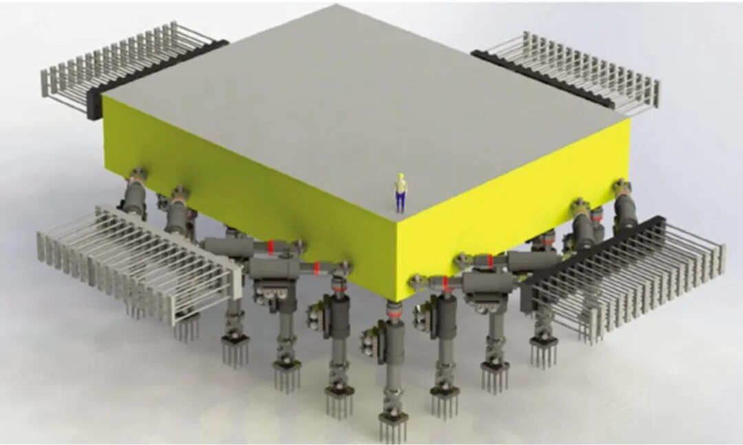 在建的天津大学地震模拟振动台是国家“十三五”重大科技基础设施建设项目,其台面尺寸为20m×16m,最大载荷13 500kN,三向六自由度,水平最大加速度1.5g、竖向最大加速度2.0g,就台面尺寸、最大载荷及综合能力考量,天津大学地震模拟振动台建成后,将超过已建成的E-Defense地震模拟试验台,成为世界上规模最大的地震模拟研究设施。