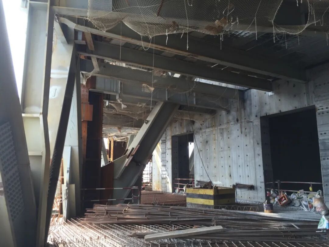 武汉绿地中心主塔楼核心筒内藏钢板剪力墙延伸至40层以上,超过200mm高度,为中国最高的超高层结构内藏钢板剪力墙。超200m高内藏钢板剪力墙提升了核心筒的抗剪能力,有效应对了外框结构外倾的设计挑战;减薄了剪力墙厚度,提升了建筑的使用空间;减轻了结构自重,减少了结构受到的地震作用与基础荷载,具有较好的经济性。