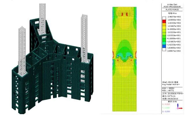 核心筒考虑施工时塔吊荷载施工工况及剪力墙内力