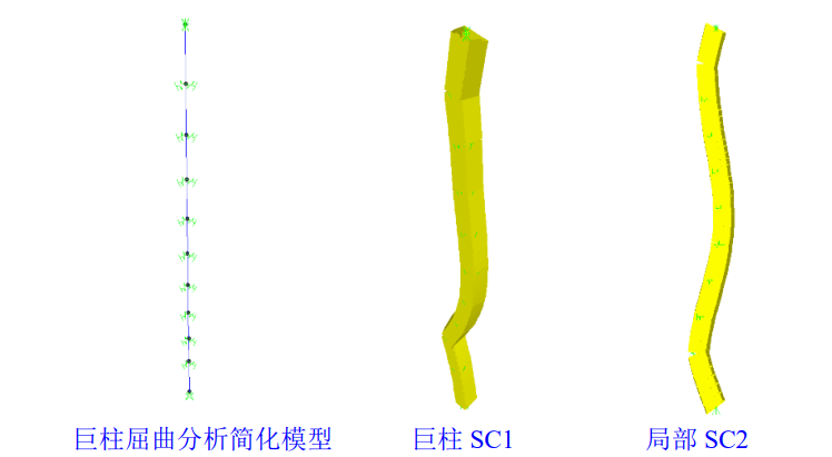 巨柱屈曲分析简化模型及某段一阶屈曲模态