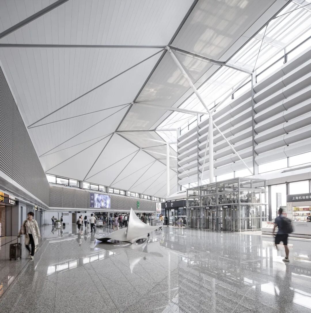 关于结构工程师应该在什么阶段开始参与到项目的设计中,我的看法是,结构因素在建筑设计最初期就应该被考虑,但这并不意味着一定需要结构工程师从一开始就参与,建筑师应该有一定的结构知识和基本经验进行初步的判断。结构工程师参与的时间点取决于建筑师对结构规律的掌握情况,当接近或快要超过建筑师的理解极限时,是工程师最理想的加入时间。这是因为方案构思需要很大的自由度,结构专业过早的参与有可能对建筑师的思路带来约束,但是自由度能有多大,又取决于建筑师对结构的理解,建筑师也需要客观地认识自己究竟掌握了多少结构知识。在实际工程中,我们会碰到情况各异的建筑师。和日本不太一样,国内的建筑师在学校里接受的结构训练总体来说是不足的。因此,有些建筑师对自己的结构概念没有信心,在设计非常早期的阶段就来咨询结构专业的意见,这不一定会对项目的发展起到积极作用。也有一些建筑师认为自己对结构的理解很深刻,在设计初期会排斥结构专业的建议,需要等到设计想法比较完整、成熟时,才让结构工程师参与,这时建筑师对结构的理解程度就决定了他会不会走弯路,也许最终的方案并不是那么合理,但已经做到一定深度,他也不太愿意改变。这些情况都可能出现。反过来,对于结构工程师来说,在参与项目时能不能跳出单专业的局限性,以全局的观念思考问题就变得非常重要,这会决定建筑师与结构工程师能否顺畅地合作下去。这也涉及结构工程师的建筑素养以及接受过的建筑训练,这在国内同样相对欠缺。就华东院来说,与项目的实际需求相比,我觉得结构工程师开始参与的时间总体还是偏滞后的。结构专业介入时已经出现了一些技术冲突的情况还是比较多。如果能够早一点引导结构走向,或让建筑师接受结构专业的想法,一开始就往更舒服的方向设计,其实会有更好的结果。在与建筑师合作时,我总试图传递一种观念:当你的建筑让结构做得很舒服时,结构就会有更多的表达机会,对建筑做出更大的贡献。从很多已建成的项目看也确实如此,在结构实现比较轻松的情况下,为建筑表达增光添彩的机会也会更多。反之,如果达到安全性目标都已非常困难,就没有更多余地把结构做精彩了。▲ 虹桥T1航站楼办票厅改造 ©Sensor见闻影像平等关系促进共同设计