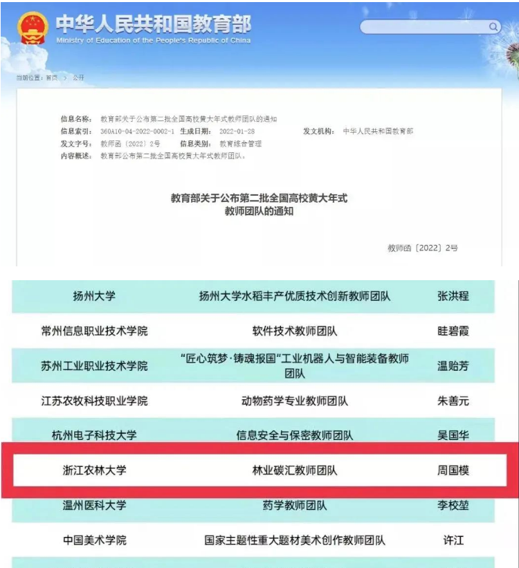 据了解,全国黄大年式教师团队——浙江农林大学“林业碳汇”教师团队,深耕林业碳汇领域20年,系统解决了竹林“如何固碳”、“如何测碳”、“如何增碳”和“如何售碳”等科学问题与技术难题,系统澄清了竹林是碳源还是碳汇的国际争议,创建了竹林碳汇精准监测和经营增汇关键技术,形成了完整的竹林碳汇理论与技术体系,还开发了《我是吸碳王》等由科普读物、科普短片等组成系列碳汇科普“网红”产品。团队多次获国家科技进步奖、省部级科技奖,在竹林碳汇领域论文发表量及影响力指数排在全球首位。团队的科研成果积累、人才培养基础、科普推广经验,都将为碳中和学院的人才培养提供坚强的师资和科技支撑。