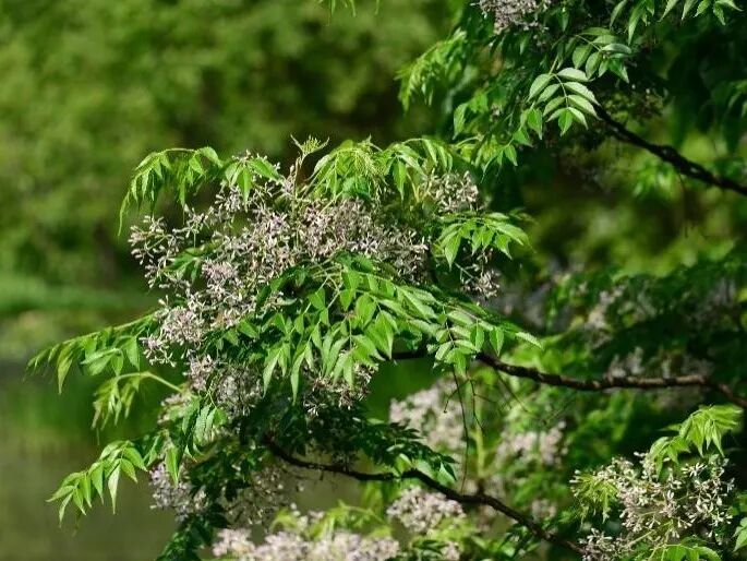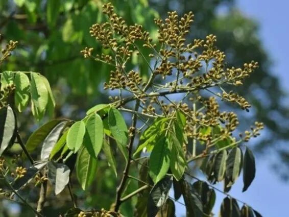落叶乔木。树皮灰褐色,纵裂。2~3回奇数羽状复叶;小叶对生,卵形、椭圆形至披针形,顶生一片通常略大,(3~7)cm×(2~3)cm,先端短渐尖,基部楔形或宽楔形,多少偏斜,边缘有钝锯齿,幼时被星状毛。圆锥花序腋生;花淡紫色,芳香。核果球形至椭圆形。种子椭圆形。花期4~5月,果期10~12月。