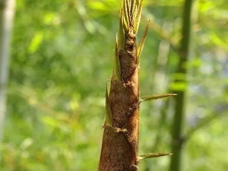 地下茎合轴型,秆直立丛生。秆高4~7m,径1.5~2.5cm,节间长20~40cm。箨鞘厚纸质,硬脆,先端不对称,长约为节间的1/4~3/4;箨耳缺如或微弱,边缘有少许䍁毛;箨舌高约1mm,全缘或具细缺刻;箨片直立,基部约与箨鞘先端近等宽。末级小枝具5~10枚;叶鞘无毛;叶舌平;叶片条形。笋期8~11月。