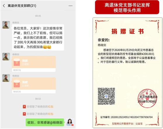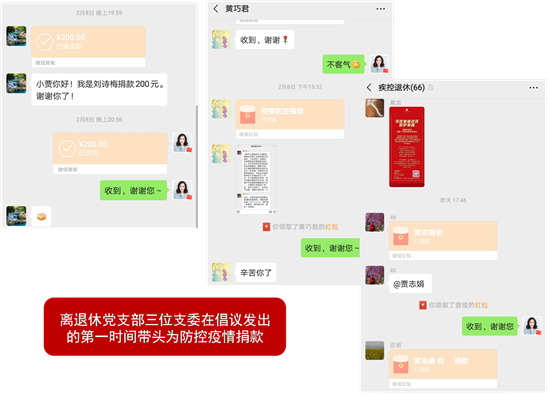 一些老同志不会用手机转账,看到捐款倡议,第一时间电话给退管干部委托他人代捐,待后面疫情结束后再补交现金过来;中心80多岁的高振华老站长,去年刚刚做了两次大手术,术后治疗经济压力很大,但他还是积极参与捐款,为抗击疫情出自己的一份力量;为了捐款,一些老同志开始学习发微信红包,向家里的小辈请教……“涓涓细流汇成大海,点点星光点亮银河”,每一笔捐款都饱含着对一线防疫工作者最真挚的关爱。
