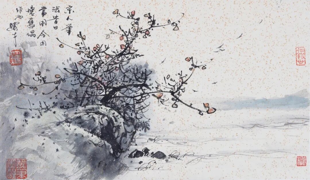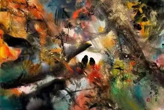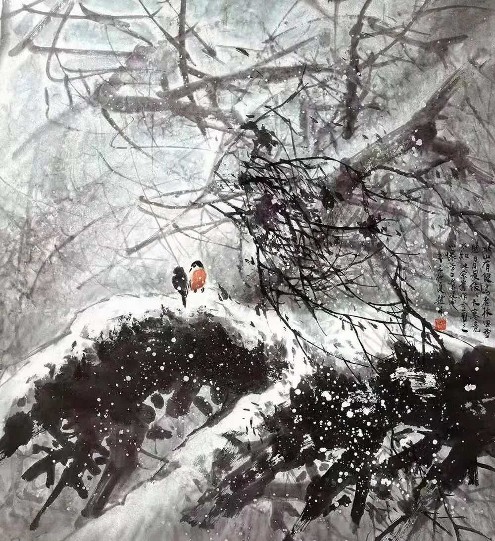 冯先生还和夫人在每年结婚纪念日时一起作画,“我们去年过了绿宝石婚,结婚55周年。每到结婚纪念日,都是我们俩人画一幅,画一对小鸟。早在六七十年代最艰苦的时候就开始了,因为我夫人也是画画的,我们那时一起画了一对小鸟在风雪里,那幅画我现在还有。后来我们一直画鸟,风景在不断地变化,这和我们对生活的感受有很大的关系。”