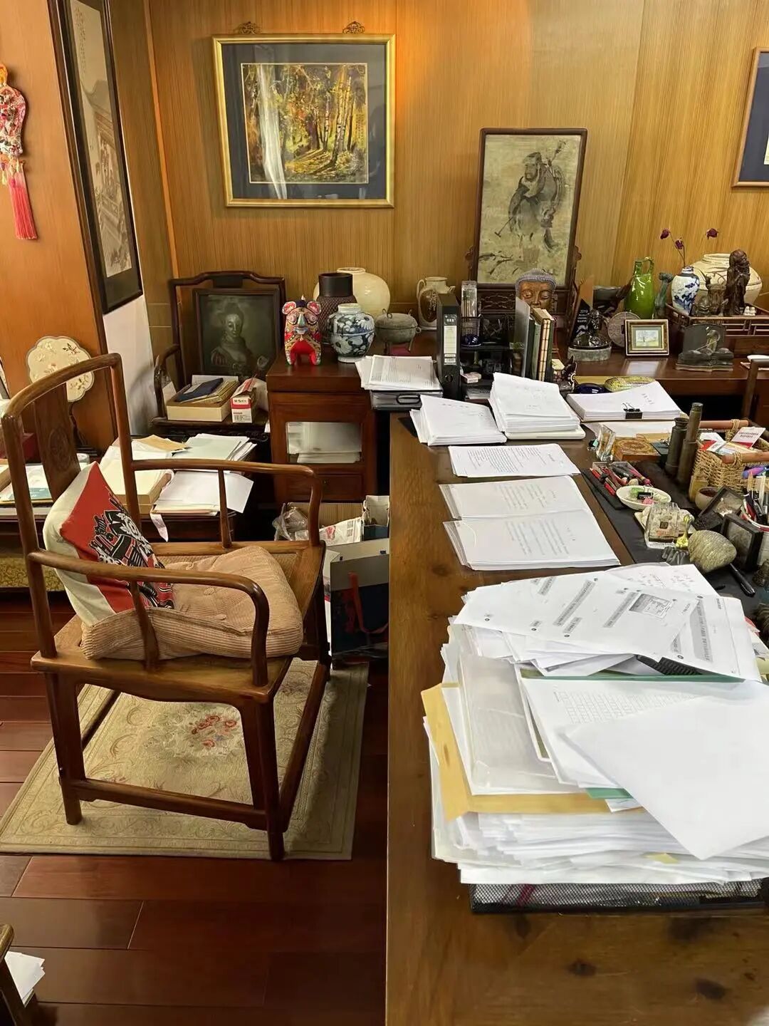 书房和画室,是冯先生每天必呆的两个地方,里面的每个物件都和他朝夕相处,“我知道每个东西里边的故事,我知道哪些东西是值得写出来,是有意味的、不能忽视的。写时一些记忆引起我内心的一些怀想,可能会有一些伤感的东西,但是不至于让我落泪。因为人到了七八十岁的时候,就会感受到一切过往的事情,不管喜怒哀乐,最后都会慢慢地变成一种诗,在文字里边,有另外的一种诗意。”