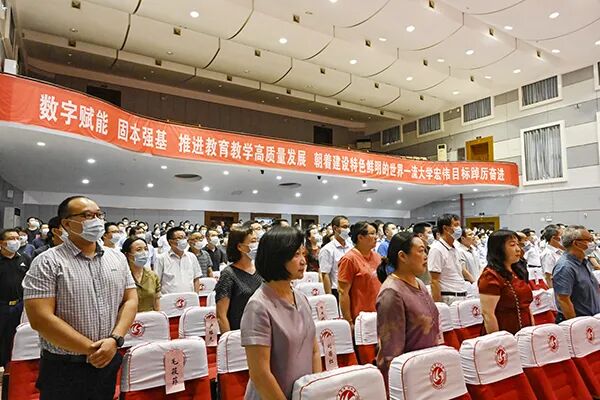 惠风和煦,硕果飘香。9月8日下午,我校在西院大礼堂举行2022年教师节表彰大会,热烈庆祝第38个教师节。校领导信思金、杨宗凯、王乾坤、夏江敬、陈文、赵经、孟芳兵、王发洲、刘春江、王世杰,校长助理罗蓉,受表彰的先进集体和个人,新入职教师,离退休教职工代表及各单位师生代表参加大会。大会由校党委副书记王乾坤主持。