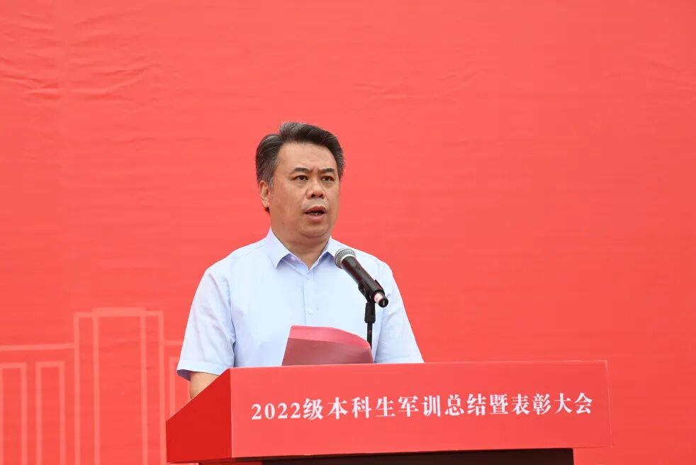 校领导王发洲、王世杰,承训部队领导,相关职能部门负责人,各学院副书记、试点书院执行院长、新生辅导员,全体教官及2022级本科生参加大会。