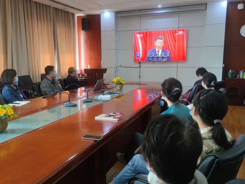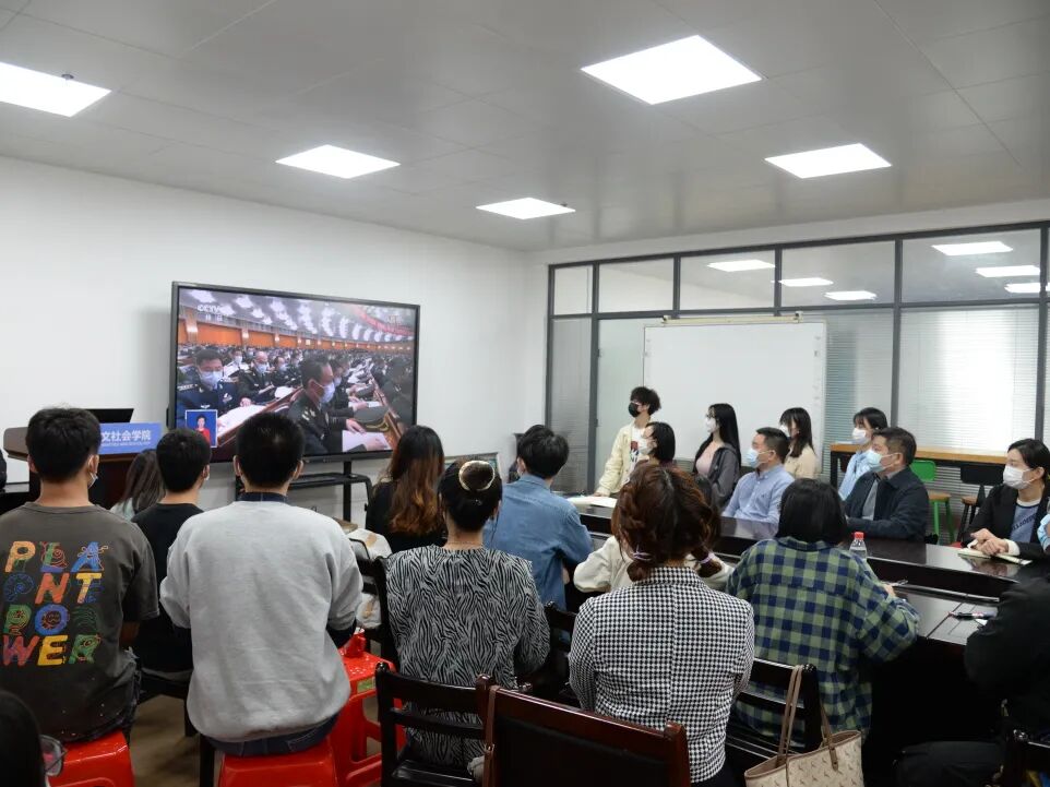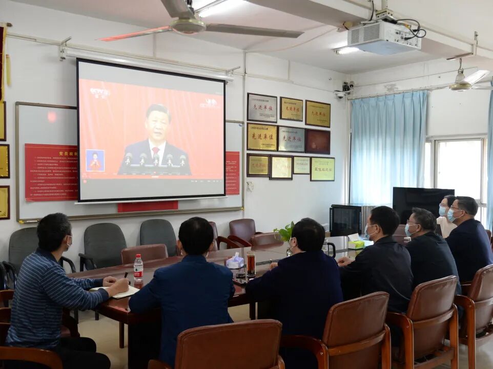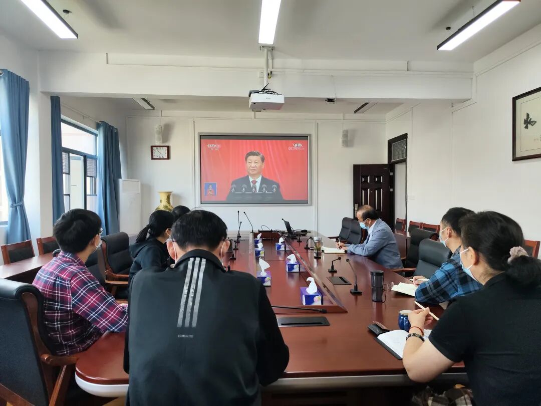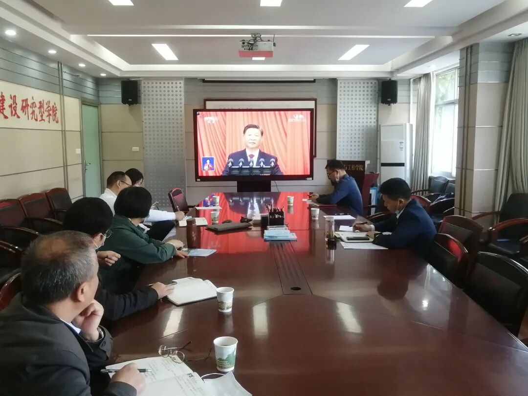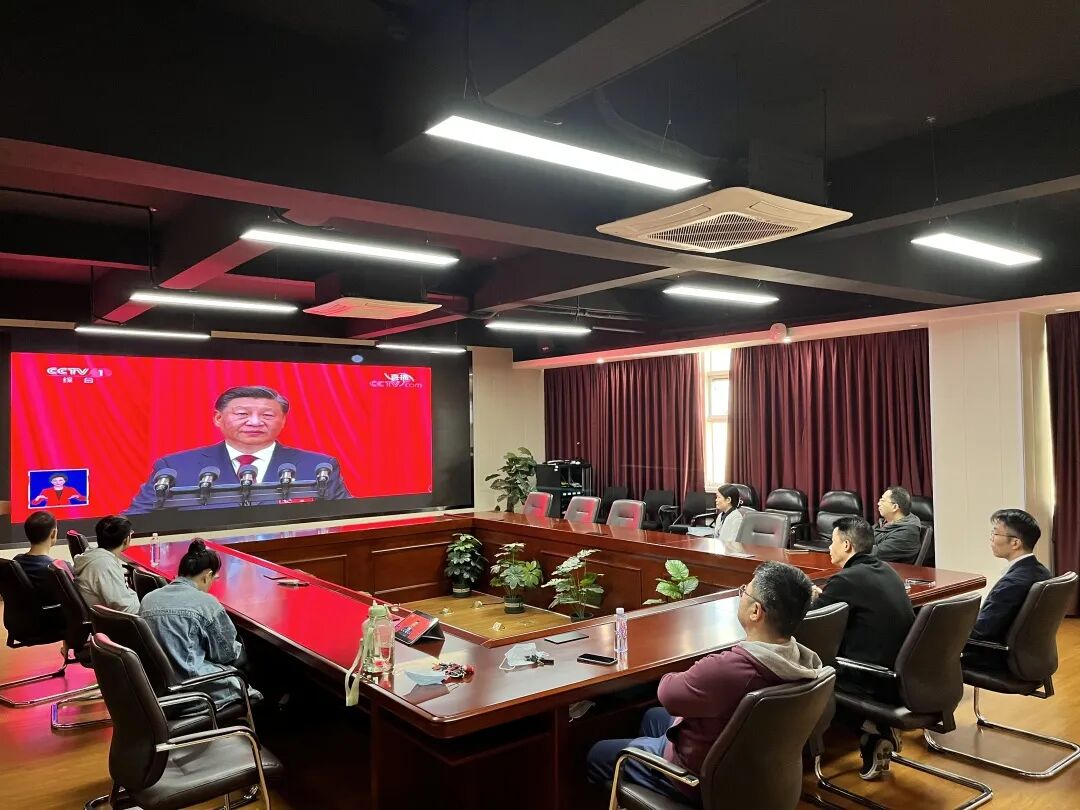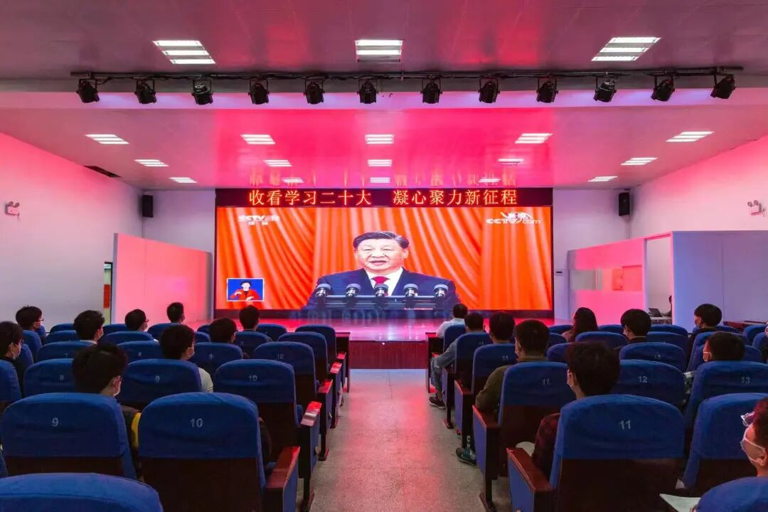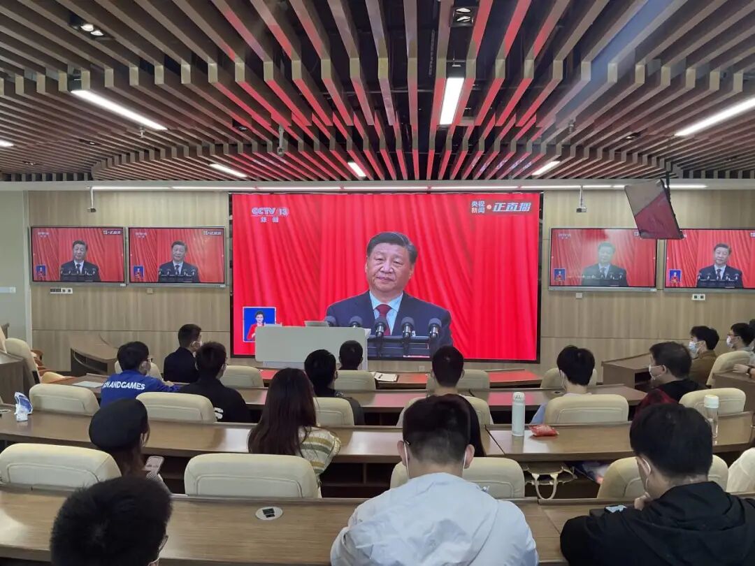 ▲校党委理论学习中心组全体成员、学校学习党的二十大精神党委宣讲团全体成员在会议中心104收看大会直播