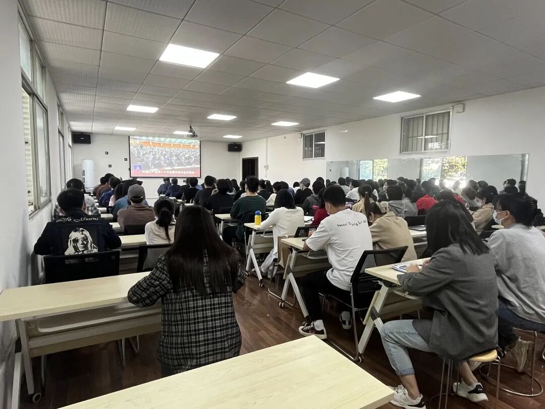 ▲师生在南湖立德楼卓越报告厅收看大会直播