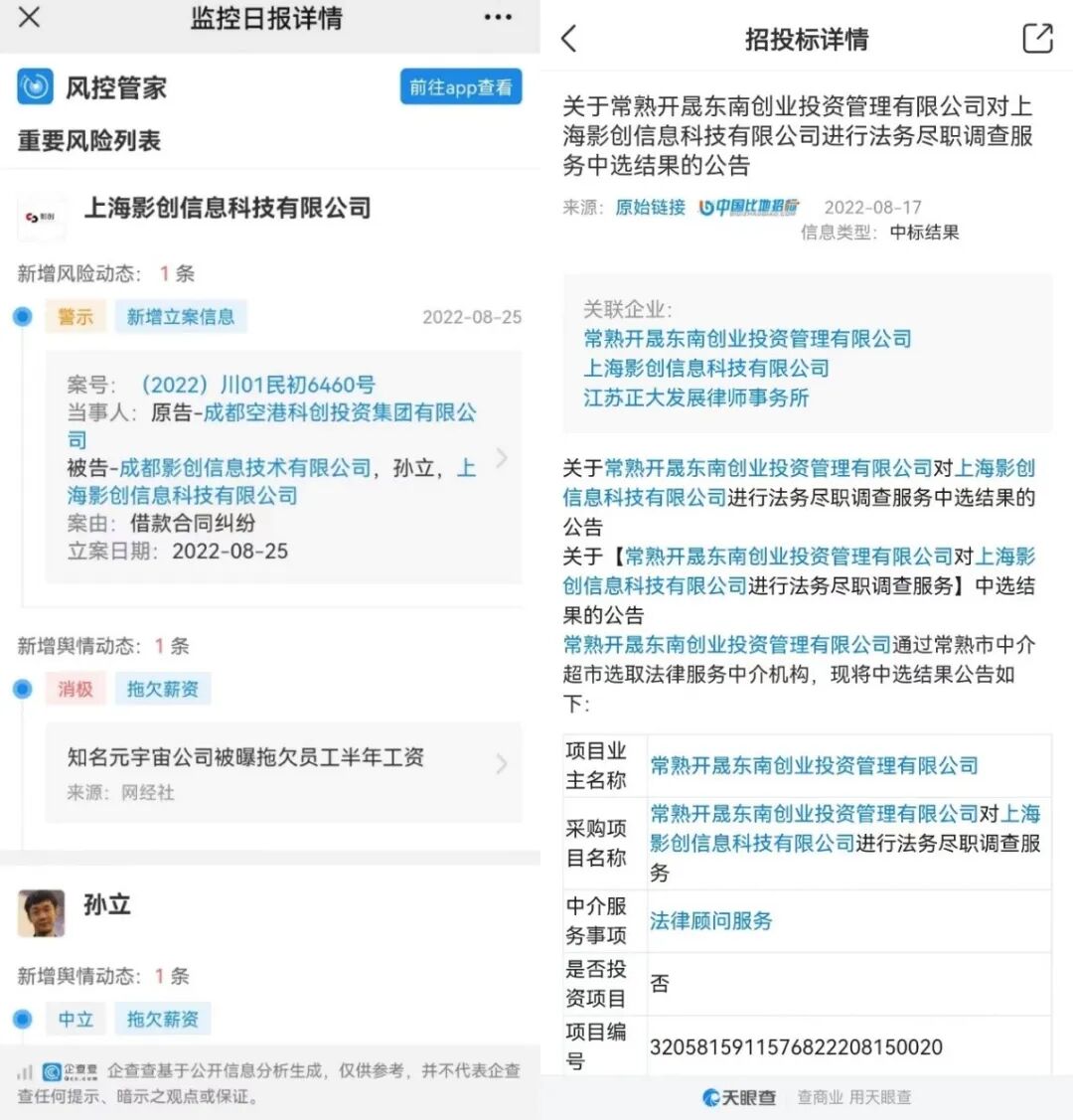 隋平透露,在影创与他发生股权纠纷期间,影创一直在找投资人商谈对影创股权投资事宜,其中就包括阿里巴巴。孙立一度在安慰被欠薪员工时,对他们宣称阿里很快就会对影创投资数亿元。然而今年3月,阿里选择了Nreal。隋平提供的影创科技董秘与财务负责人的微信对话显示。“影创未获得融资,法务问题并不多,但财务问题却有很多。”