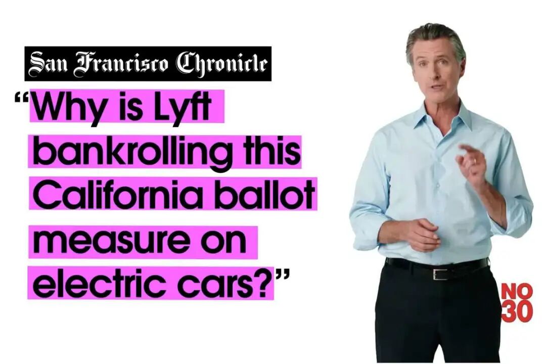 纽森亲自出镜驳斥和斥巨资投放的这则政治广告,就是在呼吁加州选民投票抵制其中的30号公投提案(Prop 30)。他指名道姓地指责这则提案只会让Lyft等共享经济巨头从中受益。