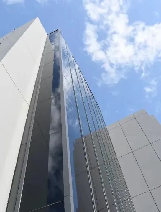 走进上服T PLAY数创园,首先映入眼帘的便是园区办公大厦。外立面采用了银灰色并结合镜面的设计,呈现出科技时尚、现代简约的风格。
