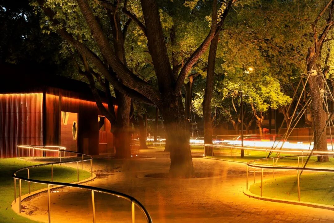 随着围墙拆除,公园打开,建成于1924年的英式建筑——音乐露台的位置更加醒目。此次改造中对露天音乐台进行了改造提升,增设了地面衔接音乐台之间的台阶,市民不用再攀爬就可以轻松到达舞台享受乐趣。同时提升了夜间景观灯光效果,增加照明度的同时,也烘托了夜游公园的氛围。