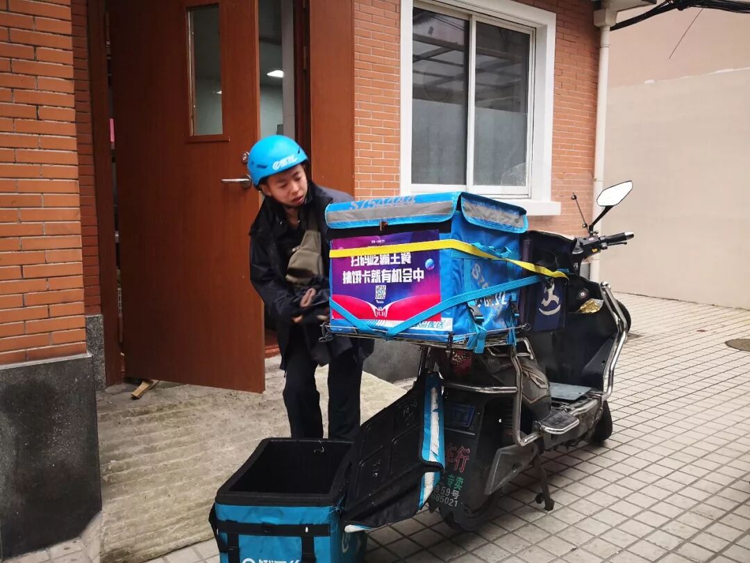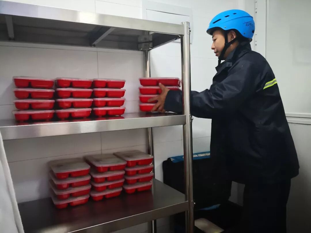 9点半左右,外卖小哥陆续出现,将自己所要派送的总份数查点清楚后放进保温箱,捆绑妥当便匆匆离去。据了解,他们每人每天负责派送20多份老人的外卖。