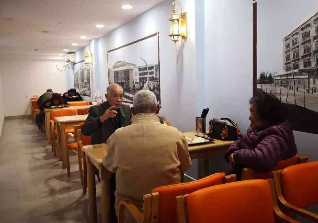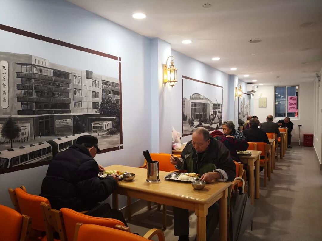 而且,餐厅的墙上还挂着天山百货商店、天山电影院、天山饭店三幅手绘画作,这是天山居民的“独家记忆”,尤其对于老人而言,总能勾选对往事的回忆!所以有的老人吃完饭也不愿离去,要再和老邻居们唠一唠当年的情景,话一话家常~