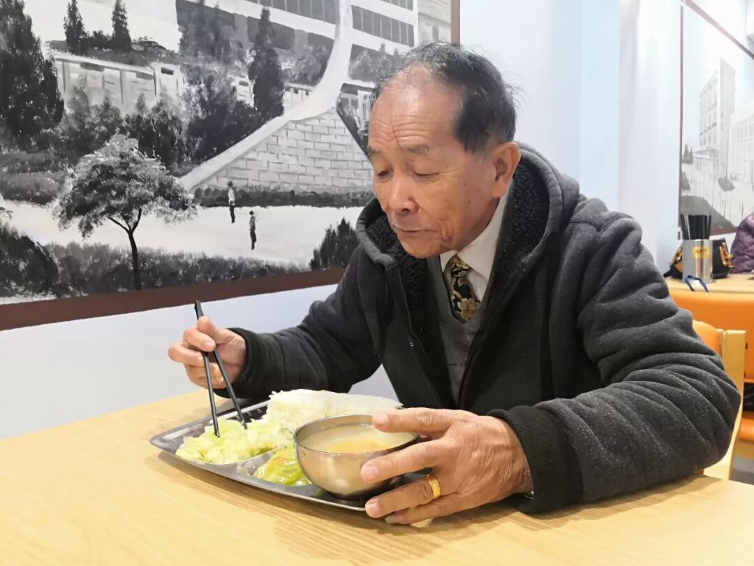 在餐厅里,记者看到,餐厅虽然不大,只能容下20多人,但原木色的桌子、橘色的凳子、颇具情调的灯饰,都为这小小的餐厅增添了温馨的家的感觉,老人们吃得心满意足~
