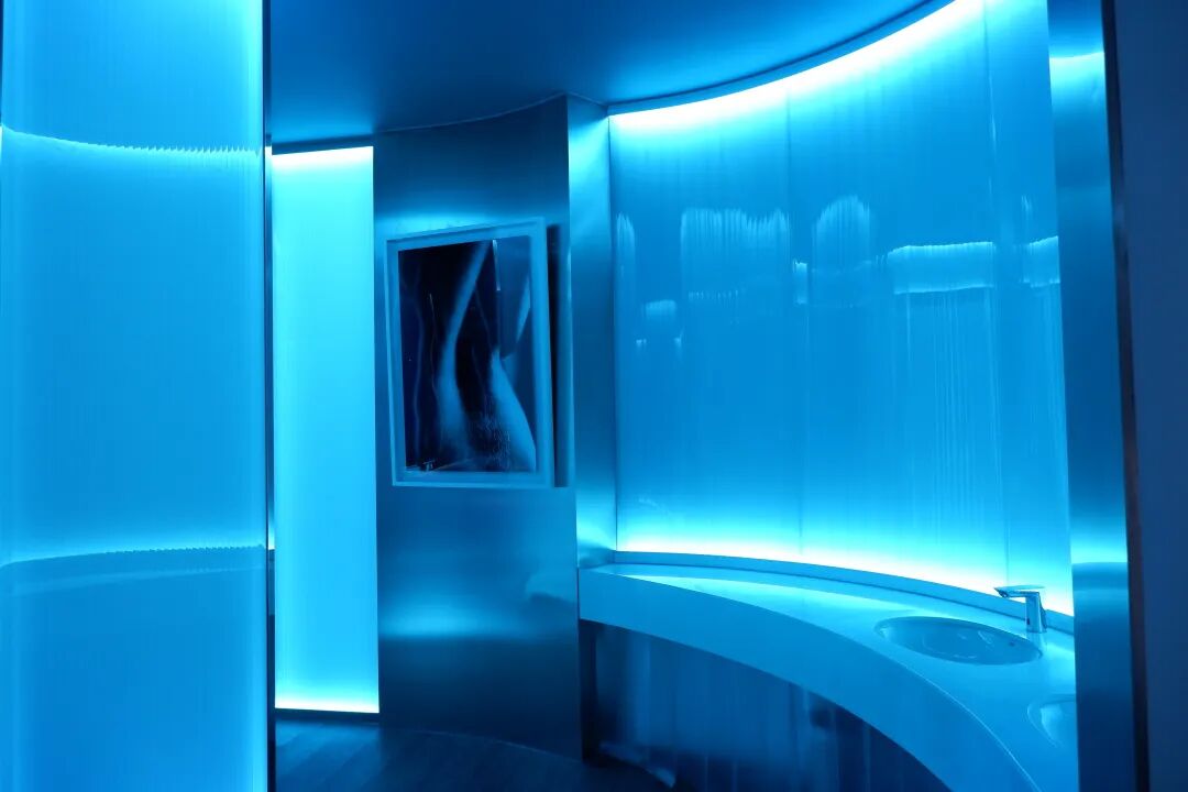 据介绍,王小慧艺术馆还是一座“会呼吸的艺术馆”。她的涂料会释放负离子净化空气;新风系统通过三级过滤和加湿调节,将室内空气质量提高至室外的100倍,同时通过静电吸附掉98%粉尘,即使是敏感肤质者也能放心;同时使用100%不含PVC及沥青、可以被回收循环利用的地板地毯;看似平平常常的一个水龙头包含了改变生活方式的黑科技……