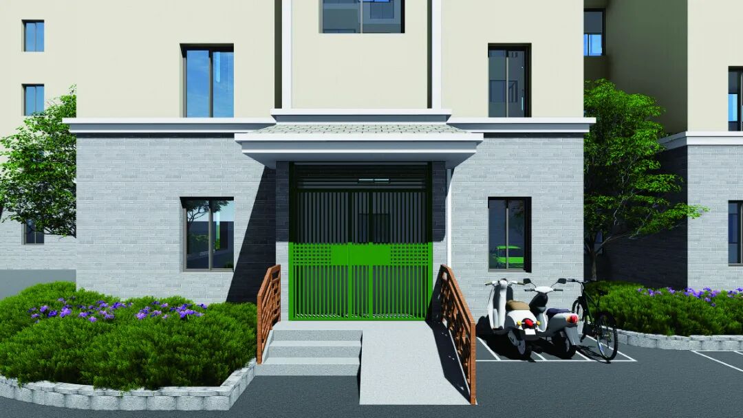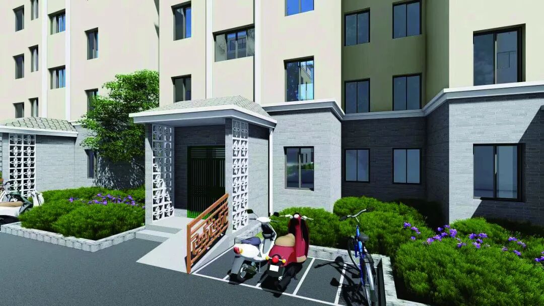 小区房屋外立面选取中高明度、中彩度的浅灰色为主色调,搭配白色线条,以营造简约、古典、婉约的生活氛围。通过对雨棚、防盗门、门禁、信报箱、入口台阶及坡道的改造,增加单元入户的实用性和美观性。![]()
