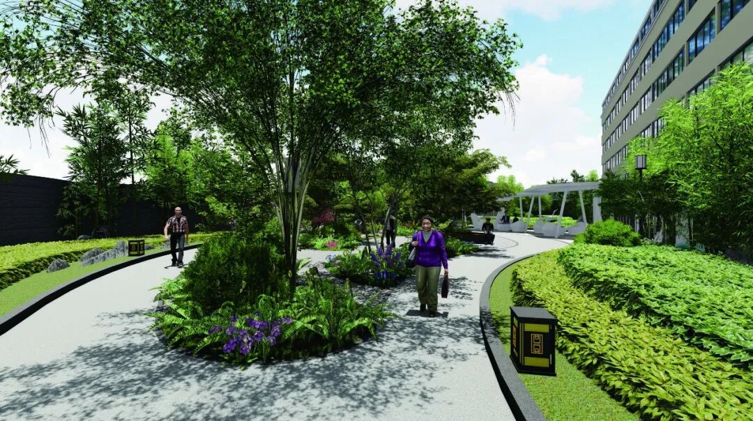 小区西南角环境清幽,植被茂密,该区域将改造成为人与自然和谐共处的生境花园。![]()