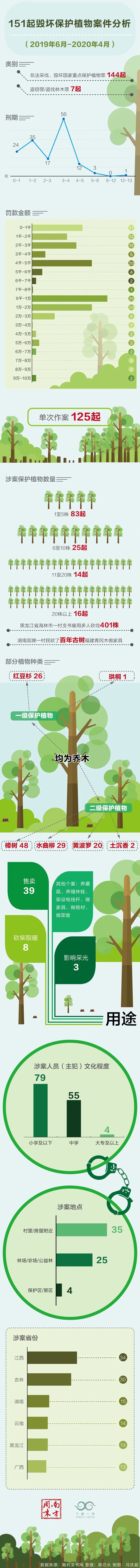 附:151起毁坏保护植物案件分析。数据来源:裁判文书网 整理:陈白水。 (冯庆超/图)