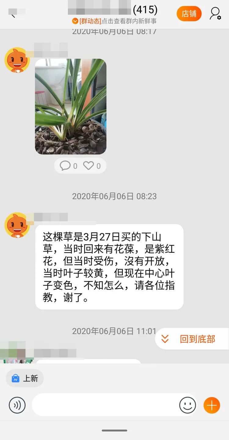 淘宝店铺的交流群,请教“下山草”的种植。 (淘宝app截屏/图)