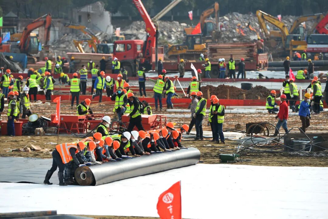 中建三局绿投公司黄孝河第一项目经理吴华波是第一批带着施工团队赶来火神山的人员之一,他记得污水厂进行闭水实验时,由于水源不足,几名工人自告奋勇,跳进冰冷的知音湖安装水泵。