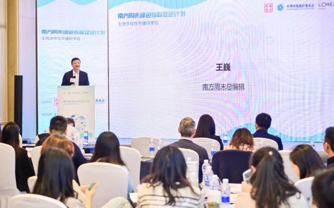 南方周末总编辑王巍首先致辞。他表示,最近几天,生物多样性成为全球“热词”。昆明举办的COP15刷爆朋友圈,引全球关注。南方周末长期关注生物多样性领域,见证了中国生物多样性保护的点滴进程, 追踪长江、祁连山、秦岭等重要栖息地保护;聚焦大熊猫、大象、绿孔雀、兰花等珍稀濒危动植物。十二年间,有着“最豪华嘉宾阵容、最专业大咖授课、最融洽学习氛围”的“绿色传媒促进计划”足迹遍布全国。让我们携手起来,“深怀对自然的敬畏之心,尊重自然、顺应自然、保护自然,构建人与自然和谐共生的地球家园”,为全球生物多样性保护贡献力量。