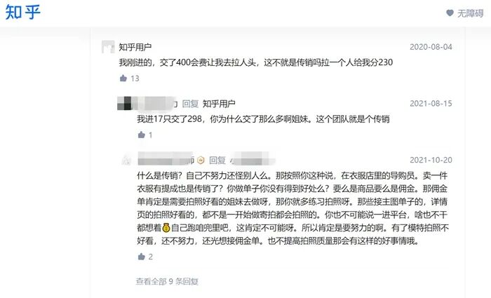 有网友在知乎上称,曾加入过“试衣员”平台,“交了400元会费让我去拉人头,拉一个人给我分230元。”