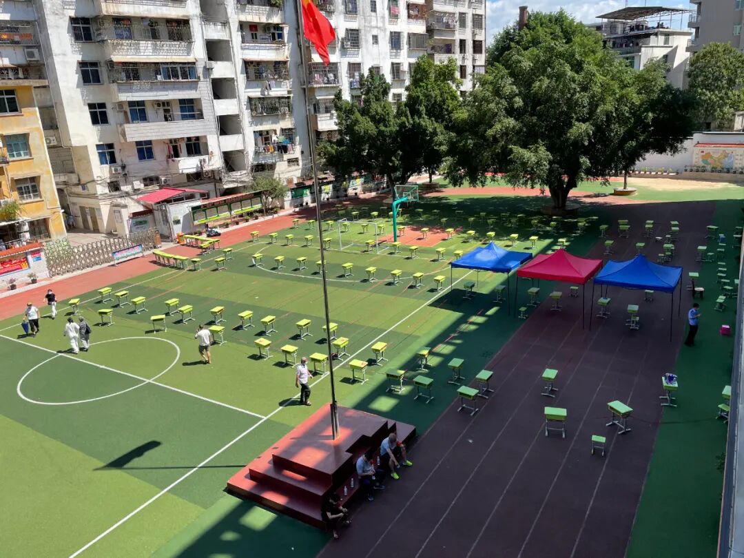 9月16日,仙游县启动第三轮全员全域核酸检测。莆田学院附属小学早就被征用为核酸检测点。操场上,课桌搬出教室摆成隔离带,采集核酸的人群得以有序排队。