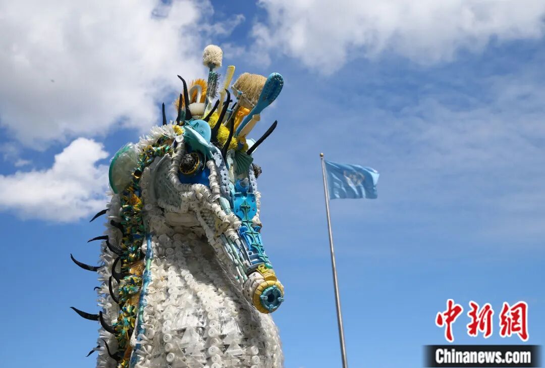 2017年6月8日,美国纽约,在联合国“海洋大会”召开之际,数尊巨型垃圾雕塑在联合国总部大厦前亮相。这些雕塑均由从海上打捞收集的海洋垃圾打造。图为一只10英尺(约3米)高的“海马”。Volkan Furuncu摄 第二,保护人类赖以生存的海洋,共建全球蓝色伙伴关系。联合国2030可持续发展议程的目标14提出,保护和可持续利用海洋和海洋资源以促进可持续发展。海洋仍将是21世纪全球经济增长的主要载体。世界各国应齐心协力在“保护”与“发展”之间找到平衡,避免全球海洋“公地悲剧”,通过海洋科技创新提高海洋资源的利用率和经济效益。