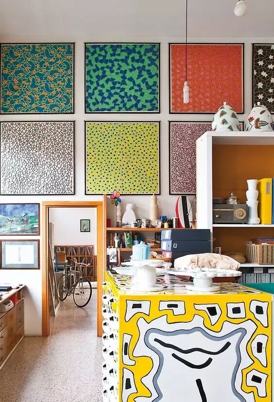 25 ▲挂一墙“孟菲斯”元素的装饰画,旧柜子改造时可参考其图案。