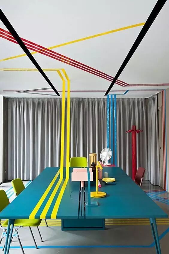 33 ▲大家不必像图中在三维空间用色带(如果你喜欢就放手干起来!),可以选一面墙,用和纸胶带贴出图案。