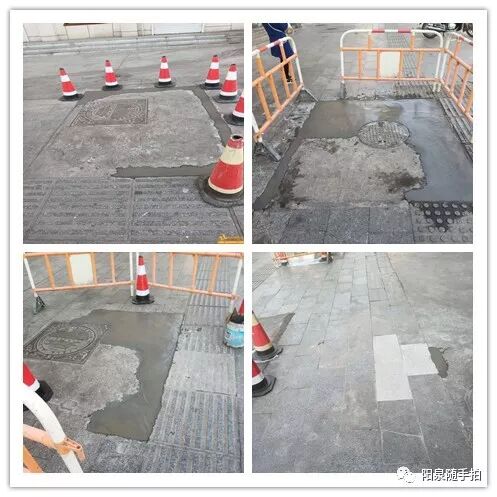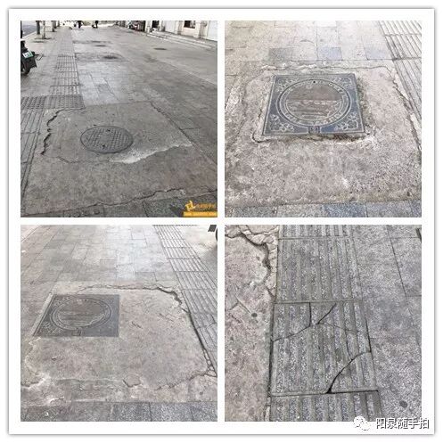 网友"sWSmVAaw9A"(2019-3-26 10:01)反映:小阳泉实验小学西侧底商门口的几个井盖周边路面坑洼,有个盲道砖也坏了,能不能修一下?