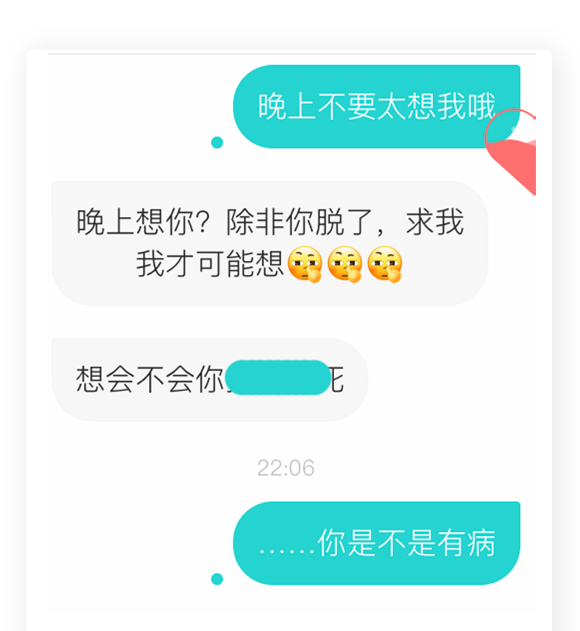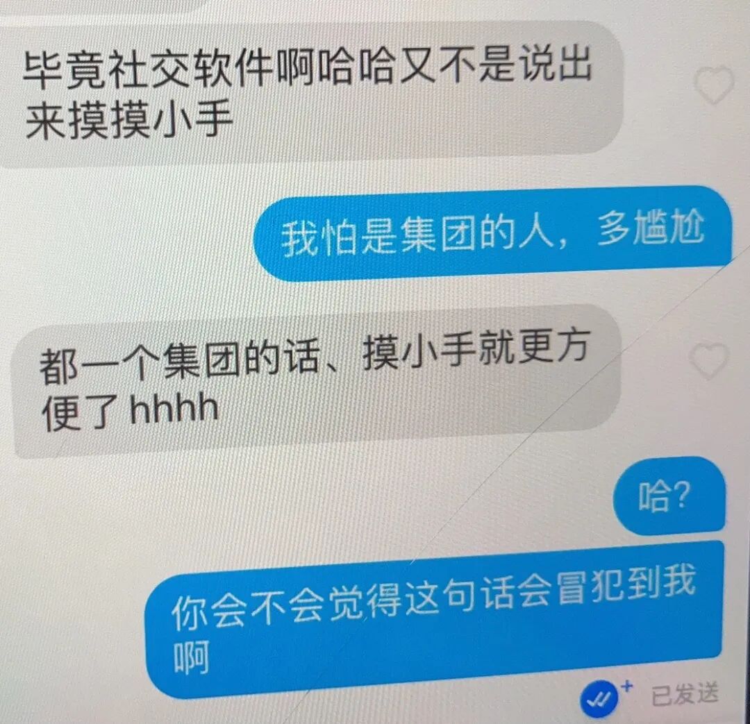 也许在他看来,“摸小手”这句仅是聊骚,并无大碍。我确实感到不太舒服。我警告后,他解除了匹配,并删除了双方的聊天记录。