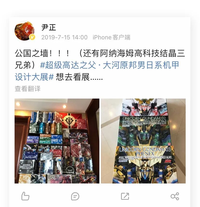 男演员尹正既是游戏迷也是高达迷,家中有价值不菲的高达模型